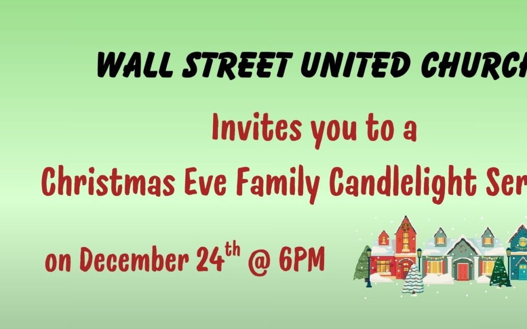 Join us at Wall Street in person or online for our Family Christmas Eve Candlelight Service. Everybody is welcome!